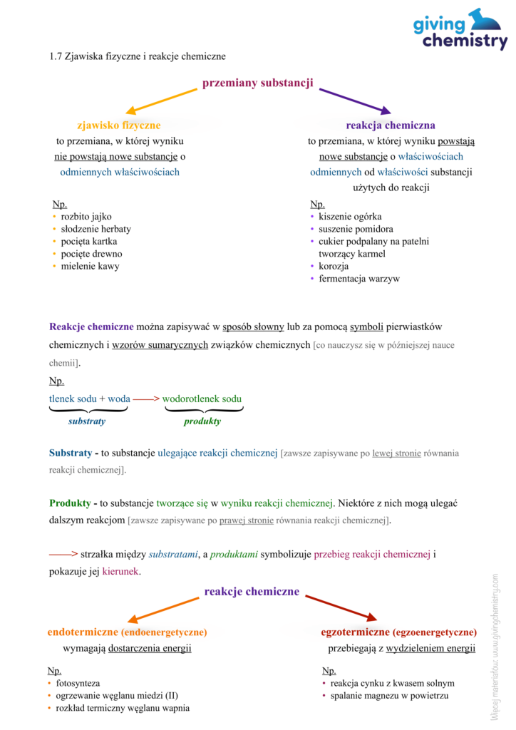 1.7 Zjawiska fizyczne i reakcje chemiczne