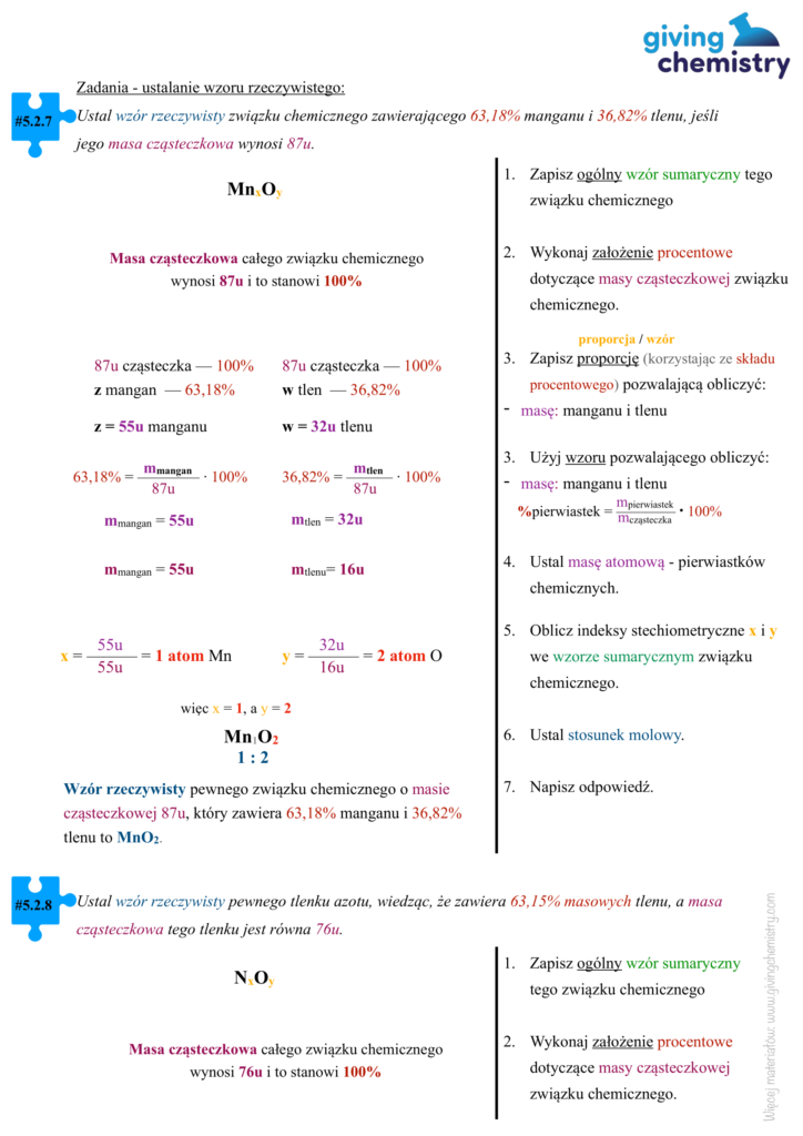 W sekcji "MATERIAŁY - Karty pracy" dostępny jest zbiór zadań obliczeniowych do tego tematu