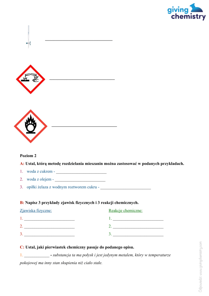Zjawisko fizyczne: np. barwa, stan skupienia, rozpuszczalność w wodzie, połysk, gęstość, temperatura topnienia i wrzenia, przewodnictwo cieplne i elektryczne