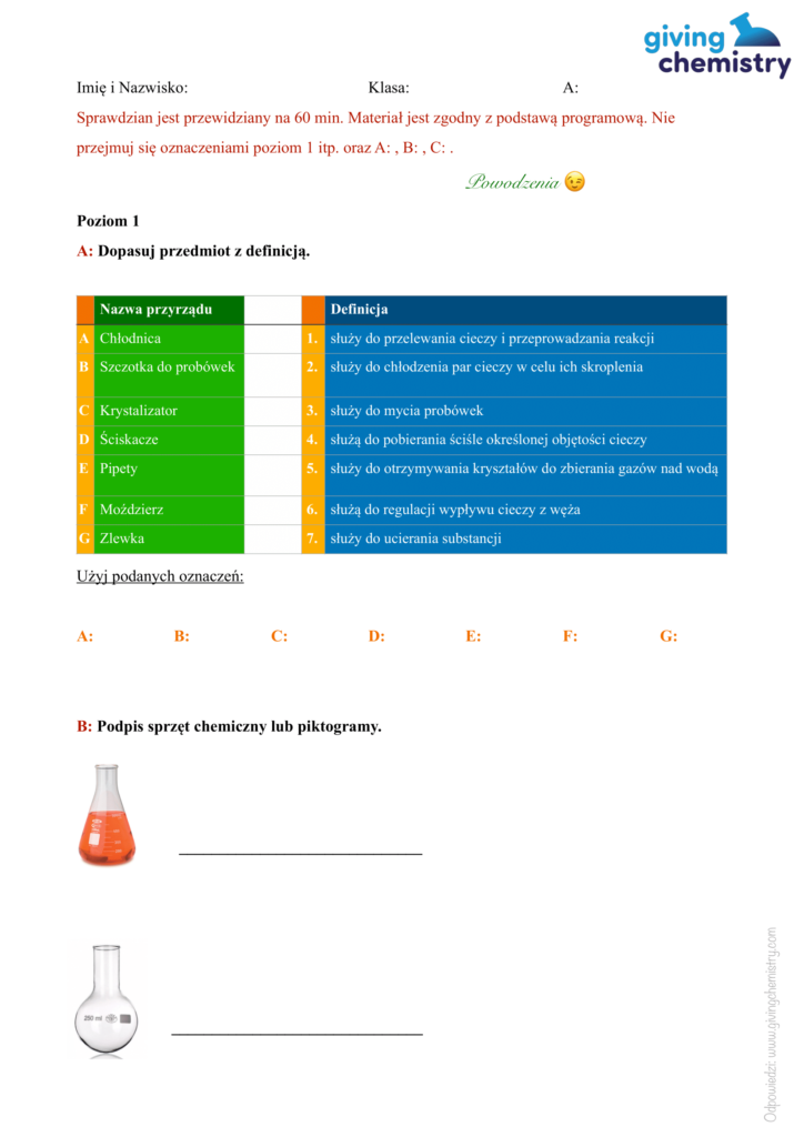 mangan, chlorek sodu, siarka, woda, tlenek węgla (II), jod, brom, glukoza, miedź, mosiądz